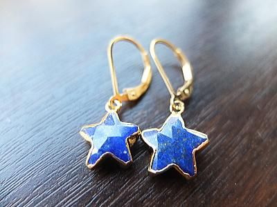 美しい藍色のラピスラズリスターカットを使用したピアスです。