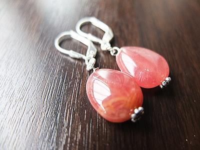 大粒ペルー産のインカローズを使用してピアスを作りました。ピアスパーツはシルバーフィルドを使用しています。