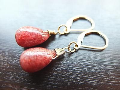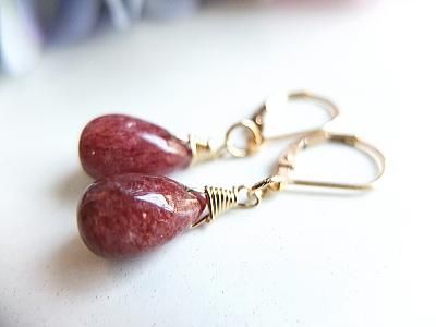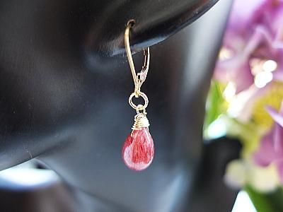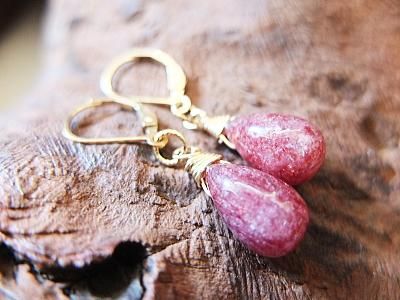 大粒のぷっくりしたドロップ型モスコバイトを使用し14金ゴールドフィルドパーツでピアスにしました。