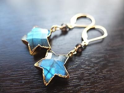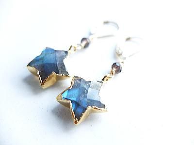 美しいシラー輝くラブラドライトスターカットを使用したピアスです。
