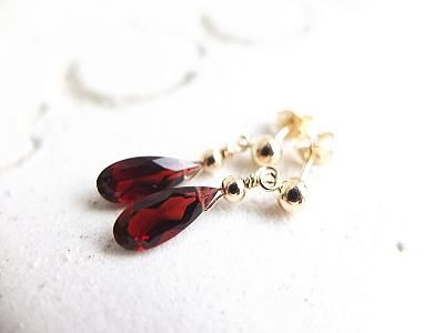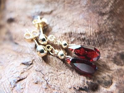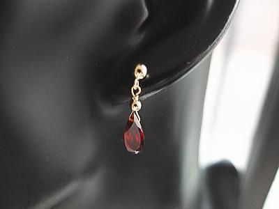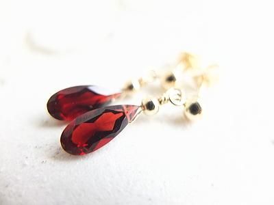 美しいアフリカ「モザンビーク共和国」でとれる宝石質レッドガーネットのぺアシェイプ ファセットカットを使用したピアスです。