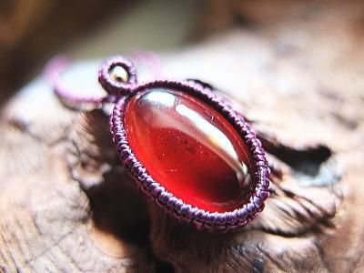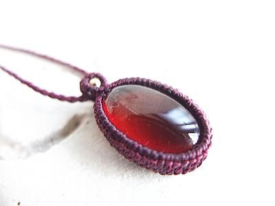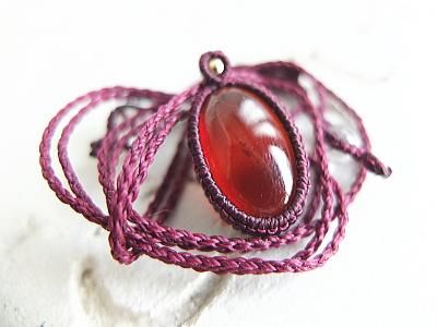 スリランカ産ヘソナイトガーネットのマクラメ編みペンダントです。