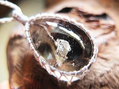 透明度の高いほんのりスモーキークォーツ、中にはしっかりとしたキューブ形のパイライトの原石が入った