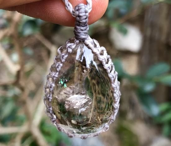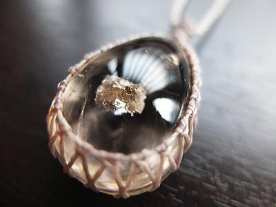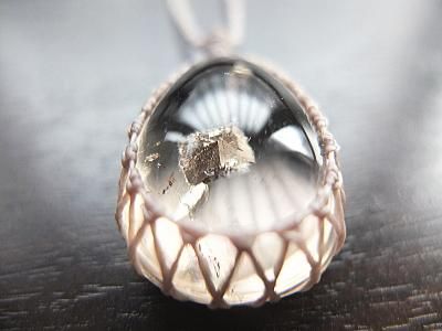 大粒!しっかりキューブパイライト!ほんのりスモーキークォーツ! 宝石質パイライトインクォーツマクラメ編みペンダント 金運UPの石、非常に強い邪気払いと強い浄化、保護作用が持ち主を危険から守ってくれる石