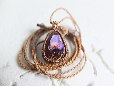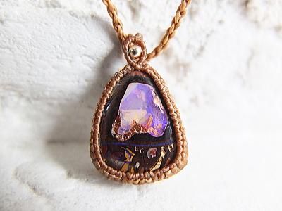 一粒一粒、世界に一つしかない魅力的な美しい遊色効果を持つボルダーオパールを使用しマクラメ編みにしました。