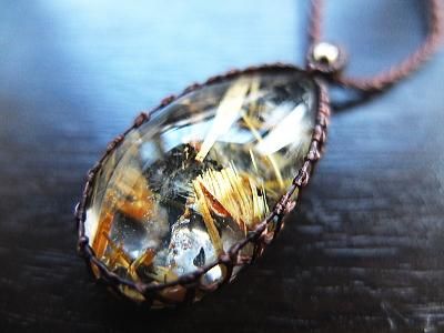 ルチルクォーツ…ルチルクォーツはクォーツの一種ですが、ルチルがクォーツのパワーをいっそう高めるため、通常のクォーツよりも強力なエネルギーをもつといわれています。内部に『金色の線』が入っていることから『金銭』を呼び込むパワーストーンとされ、特に、黄金色に美しく輝くものは金運のお守りとして古くから珍重されてきました。