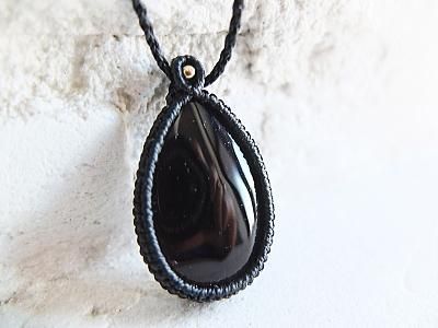 美しい漆黒の黒水晶を使用したマクラメ編みネックレスです。ゴールドパーツは14金ボールを使用しています。