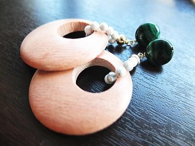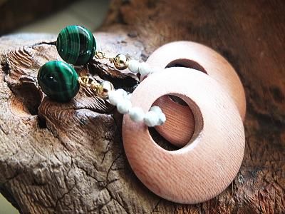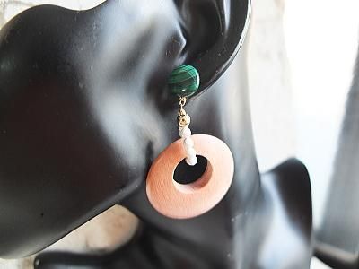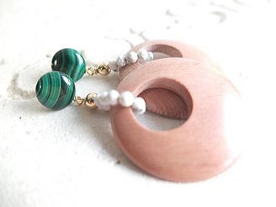 高品質マラカイトとローズウッドのコイン(ドーナツ)を使用したピアスです。