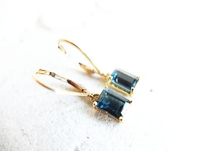 深いブルー宝石質ロンドンブルートパーズファセットカット14金GFピアス 誠実という石言葉を持ち、勇気を持って未来に進む為のサポートをする石、持ち主にとって必要なものと出会わせてくれる石、