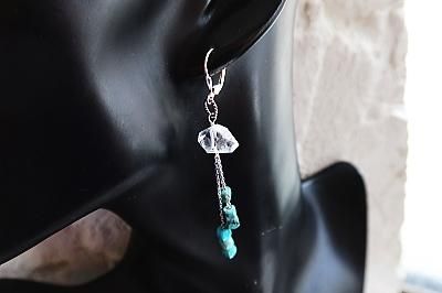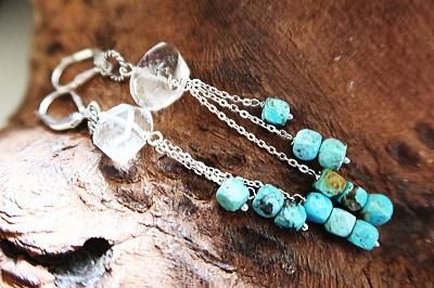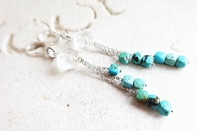マダガスカル産ホーランダイトクォーツとキューブ型天然ターコイズを使用してピアスにしました。