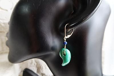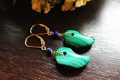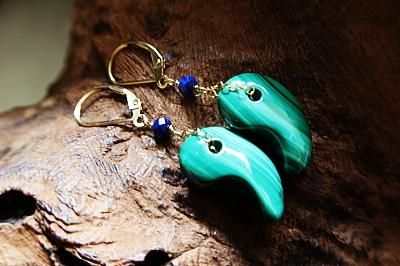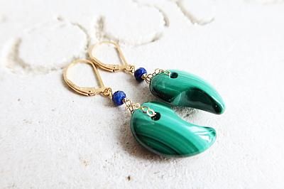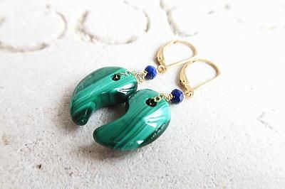 高品質マラカイト勾玉とラピスラズリを使用したピアスです。