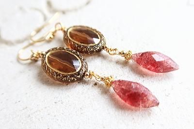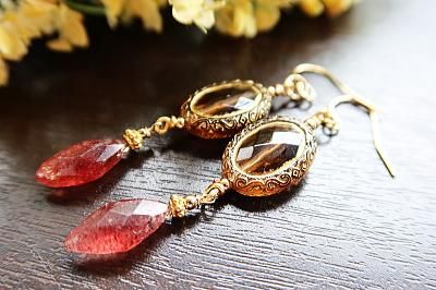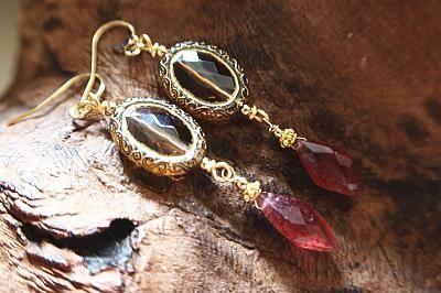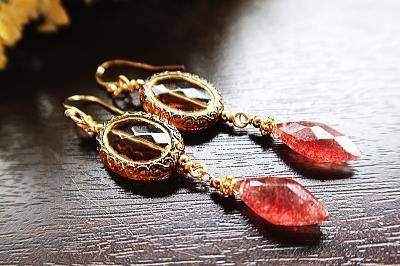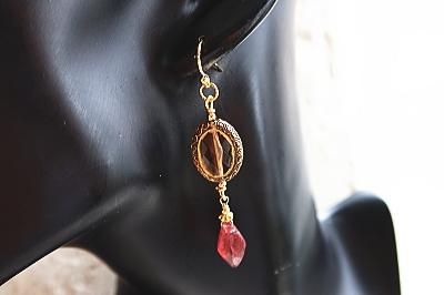シックな色合いが素敵なピンクエピドートのダイヤカットとドイツ製アクリルパーツ使用したピアスです。