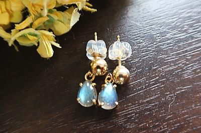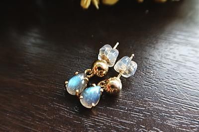 美しいブルー〜グリーンの強いラブラドレッセンス(シラー)が見られるラブラドライトを使用したピアスです。