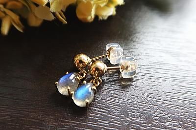 美しいブルー〜グリーンの強いラブラドレッセンス(シラー)が見られるラブラドライトを使用したピアスです。