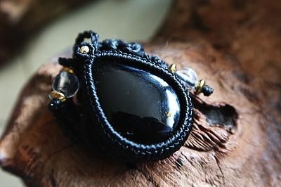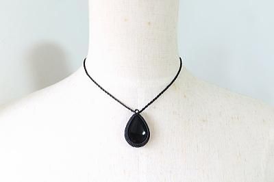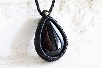 美しい漆黒の黒水晶を使用したマクラメ編みネックレスです。ゴールドパーツは14金ボールを使用しています。