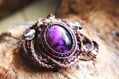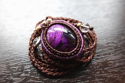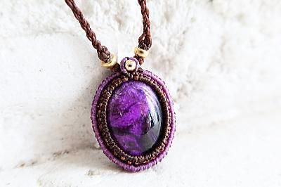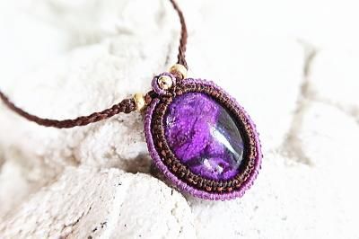 世界3大ヒーリングストーン、アフリカ産高品質スギライトを使用したマクラメ編みネックレスです。