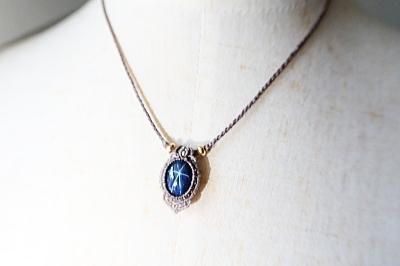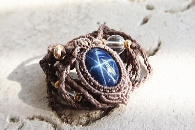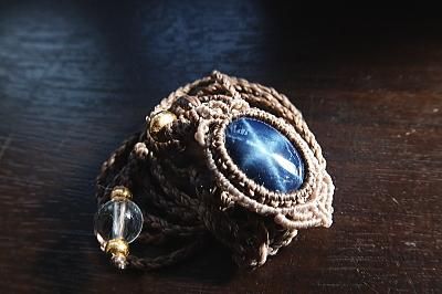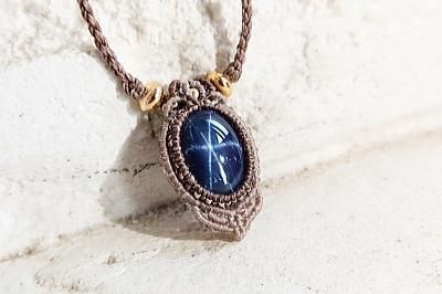 美しいしっかりとスターの出るスターサファイアのマクラメ編みです。