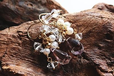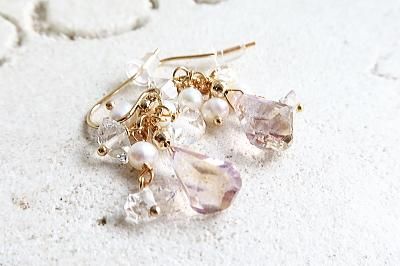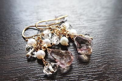 美しいボリビア産アメトリンとニューヨーク州ハーキマー産の美しいハーキマーダイヤモンドと淡水パールを使用しました。
