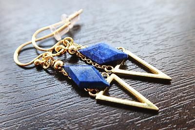 発色の良い宝石質のラピスラズリを使用したピアスです。