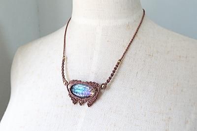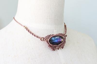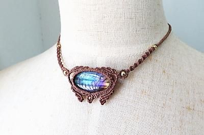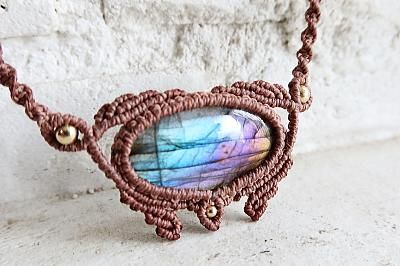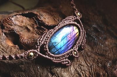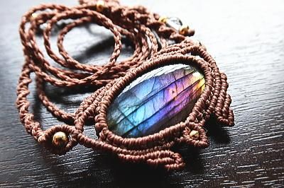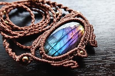 魅惑的なレインボーが美しいラブラドライトのルースを使いマクラメ編みで仕上げたペンダントです。