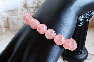 美しく愛らしい濃いピンクのマダガスカル産ディープローズクォーツ10mm玉を使用しブレスレットにしました。