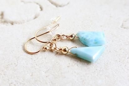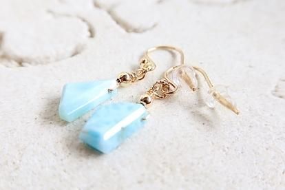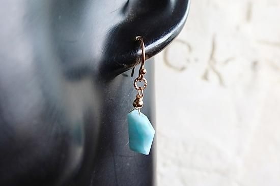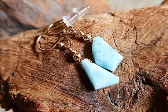カリブ海が世界に誇るラリマーのスライスカットを使用したピアスです。