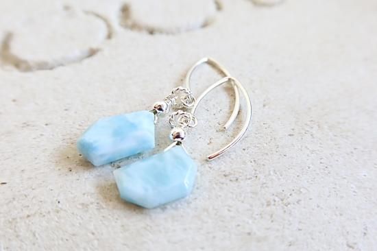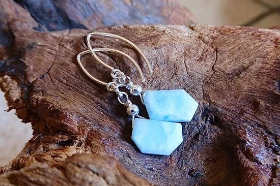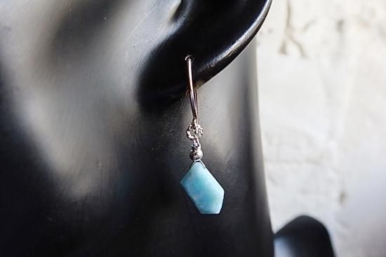 カリブ海が世界に誇るラリマーのスライスカットを使用したピアスです。