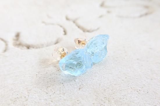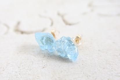 ラフロック宝石質スカイブルートパーズ14金GFピアス NO,1 誠実という石言葉を持ち、勇気を持って未来に進む為のサポートをする石、持ち主にとって必要なものと出会わせてくれる石
