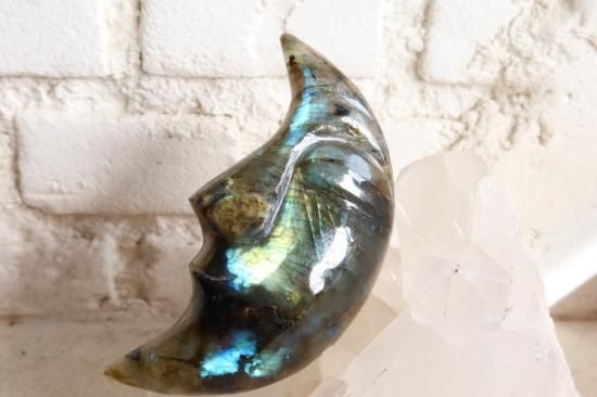 ブルーシラーが美しい!めずらしい三日月ムーンフェイスラブラドライトNO,2 神秘的な波動が強く魂のルーツを象徴する石 生きる意味を探し求める人の魂レベルでの自己への探求へと導く石