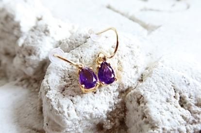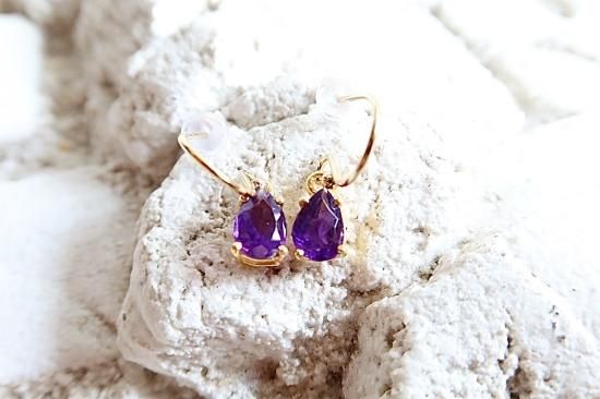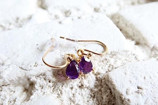 小さなウルグアイ産アメジスト14金GFピアス幸運を運ぶ石、ヒーリング効果が非常に強くインスピレーション・直観力を高める石、マイナスエネルギーを浄化し、希望の光で心を満たしてくれる石