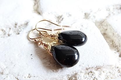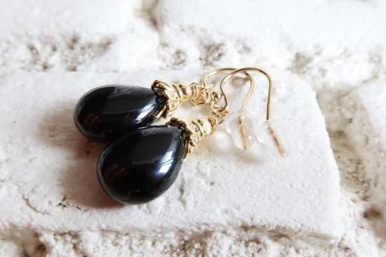 美しい漆黒の黒水晶を使用したピアスです。