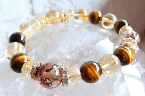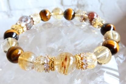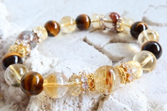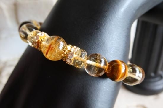Y様オーダーブレスレット ルチルクォーツ、シトリン、ガーデンクォーツ、タイガーアイ