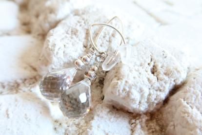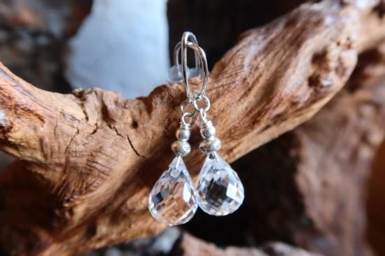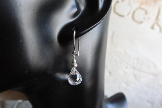 美しいブリオレットカットの高品質天然水晶を使用しピアスにしました。