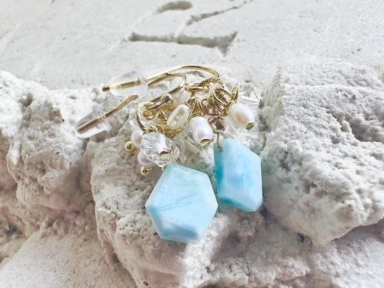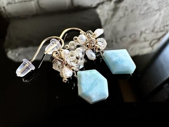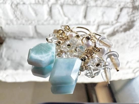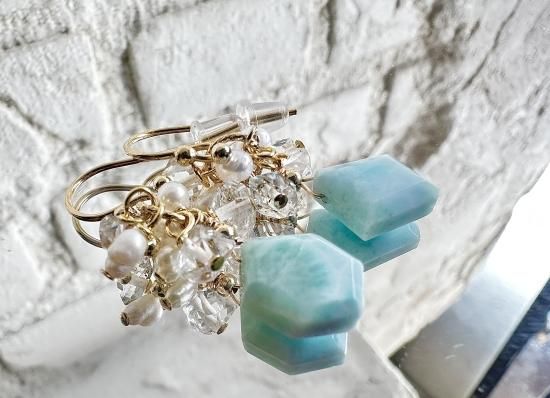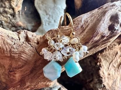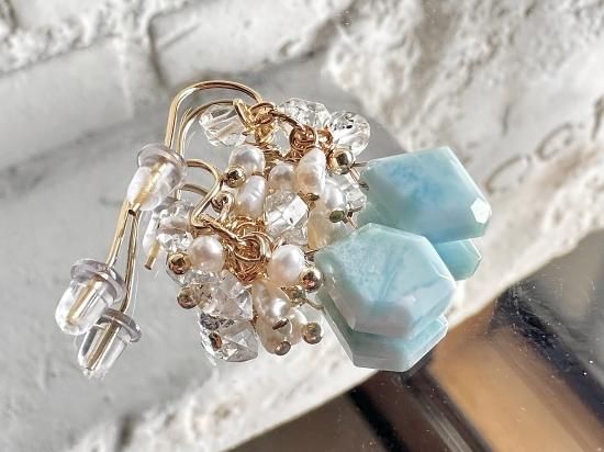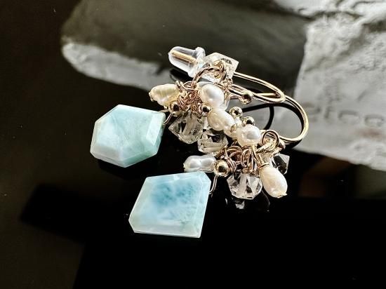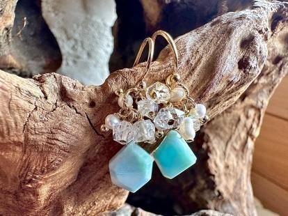 カリブ海が世界に誇るラリマーとハーキマーダイヤモンド、淡水パールを使用しました。