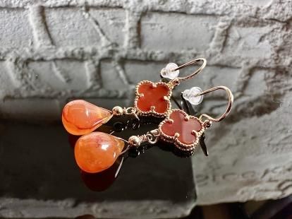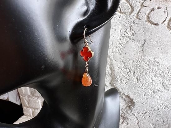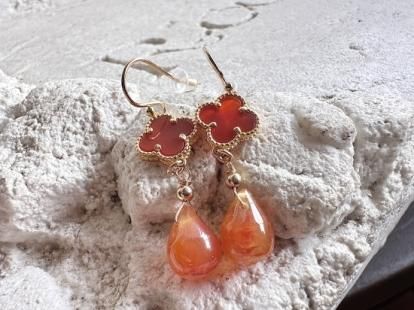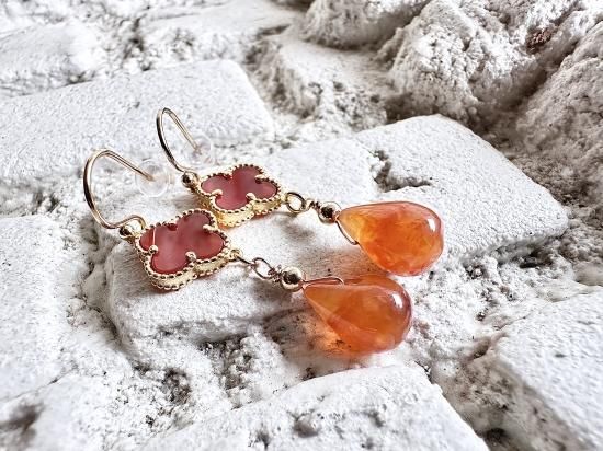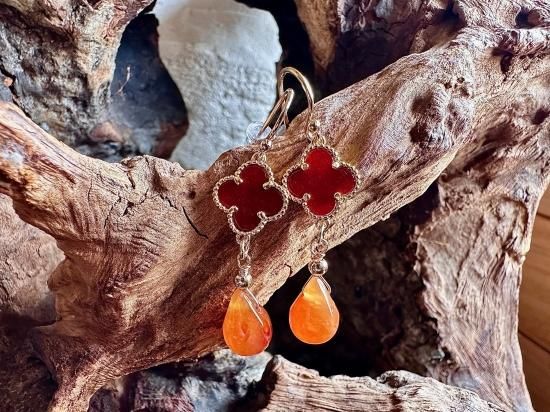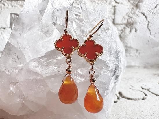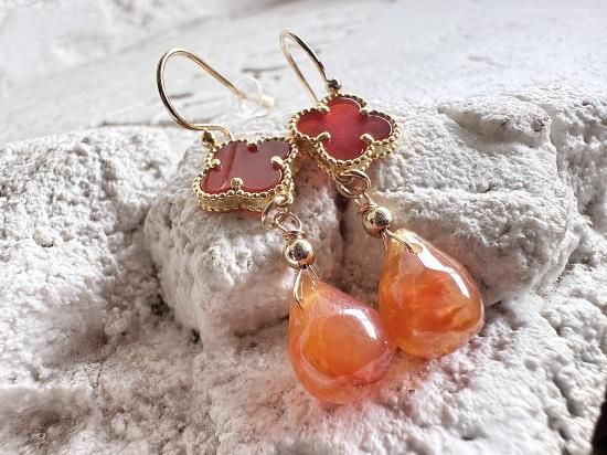 宝石質カーネリアンフラワー型14金GFピアス 何かを始めようとする人や活力不足を感じている人へ。 臆病な気持ちを退け力強さと勇気を与え目標の達成や成功に導く石