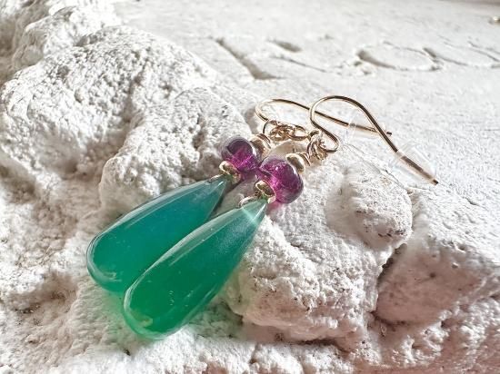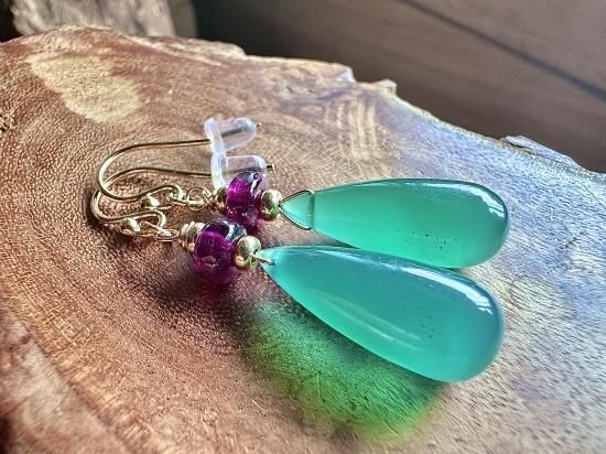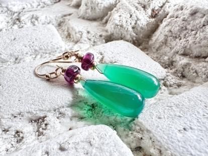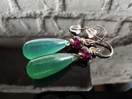 美しい宝石質グリーンオニキスとロードライトガーネットを使用しました。