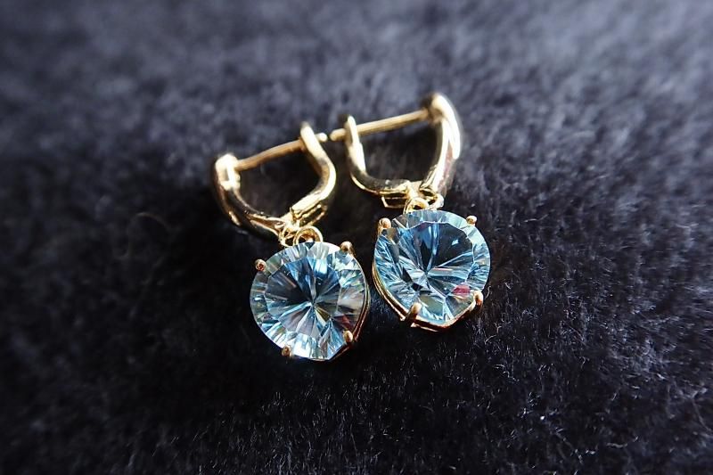 美しい宝石スカイブルートパーズコンケーブカットを使用しました。