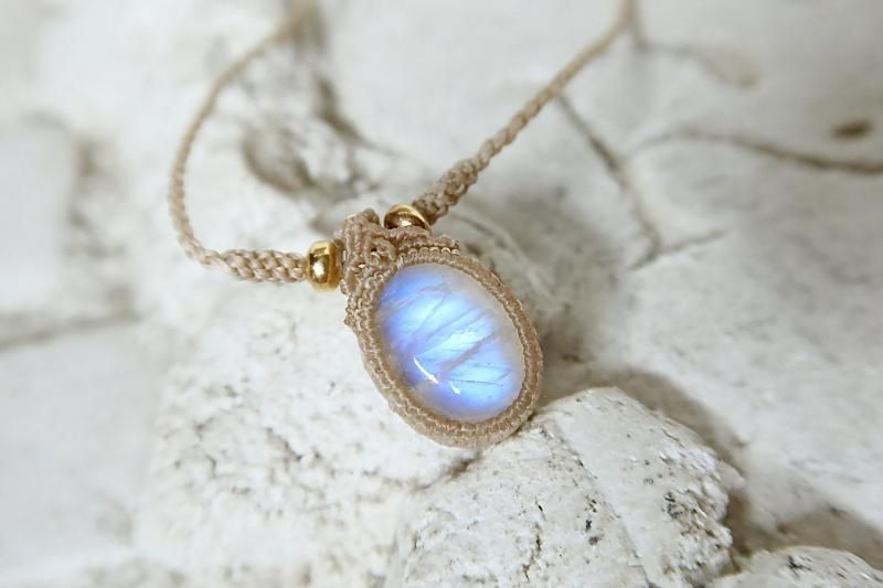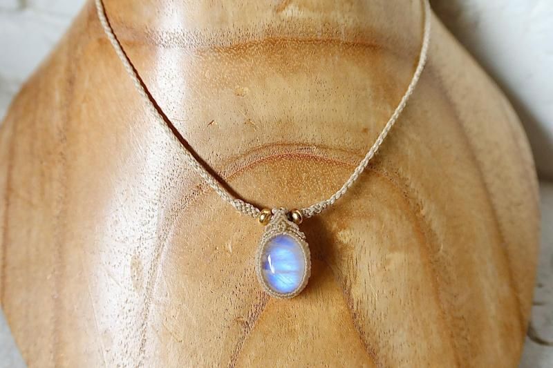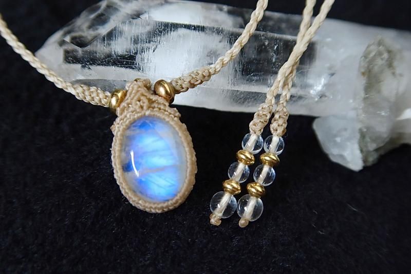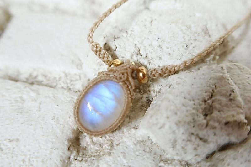 インド産ムーンストーンのマクラメ編みペンダントです。