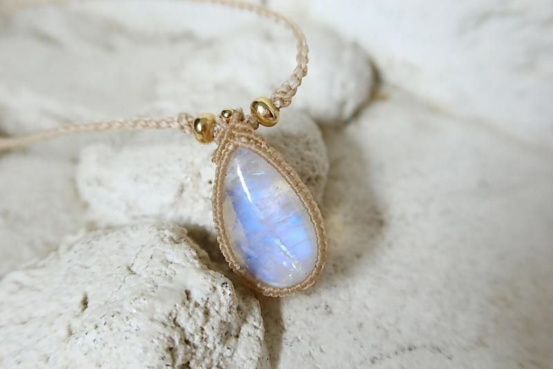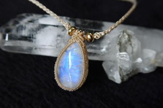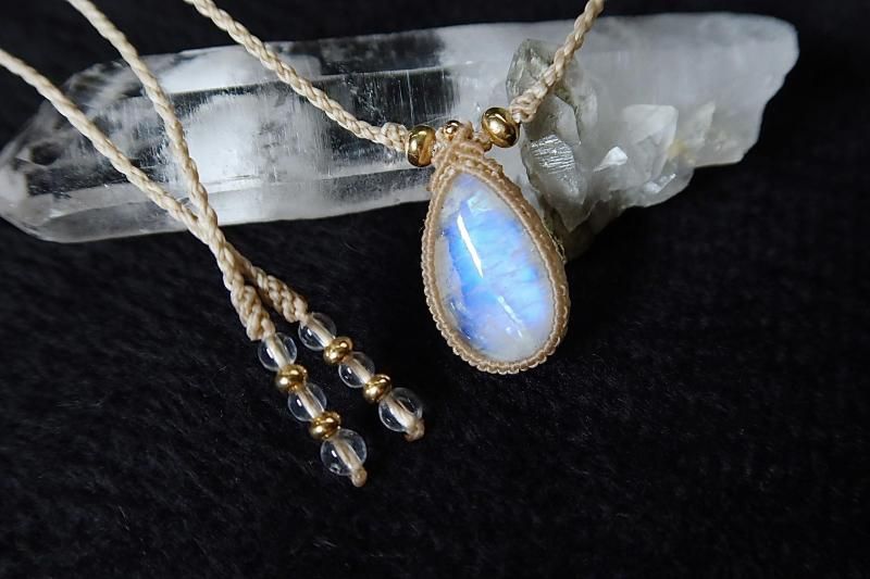 インド産ムーンストーンのマクラメ編みペンダントです。
