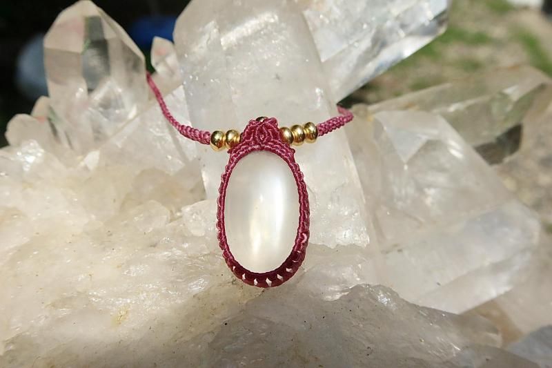 インド産ムーンストーンのマクラメ編みペンダントです。