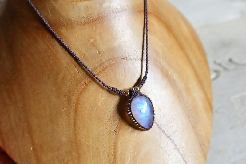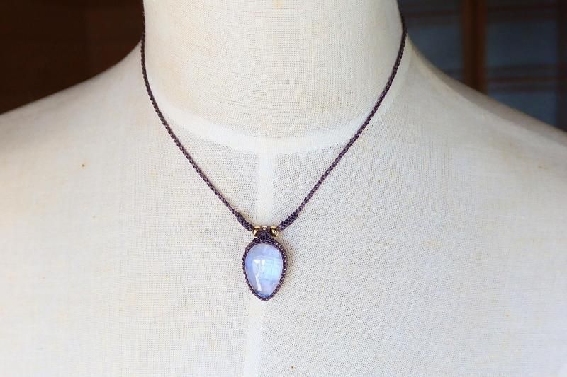 インド産ムーンストーンのマクラメ編みペンダントです。