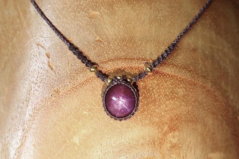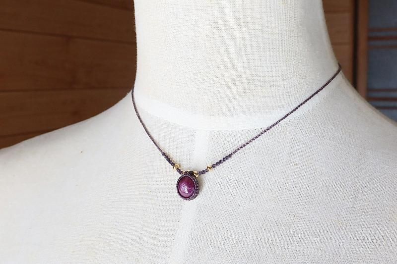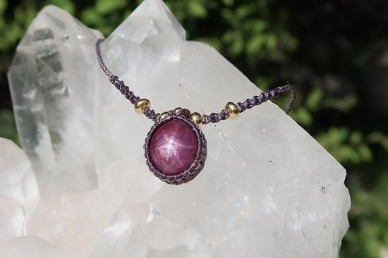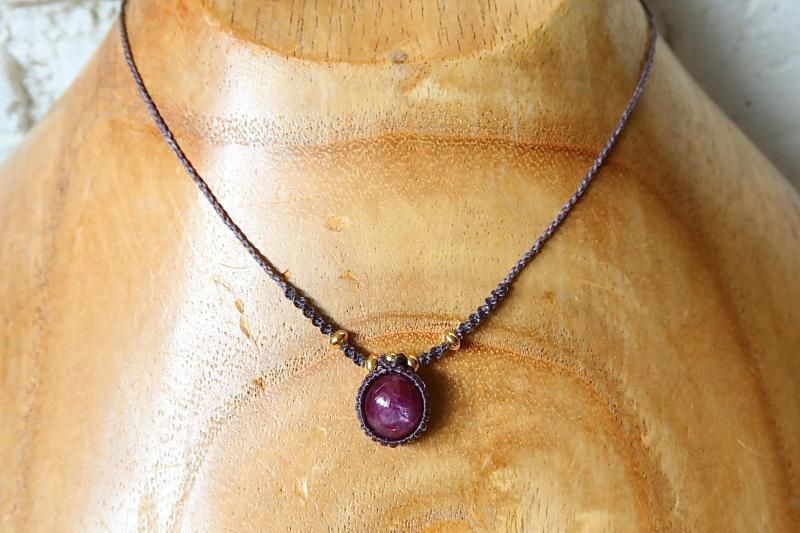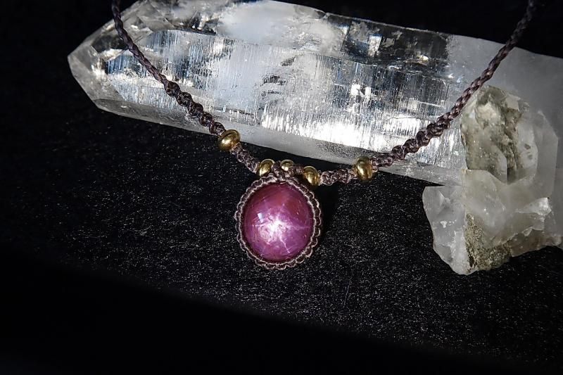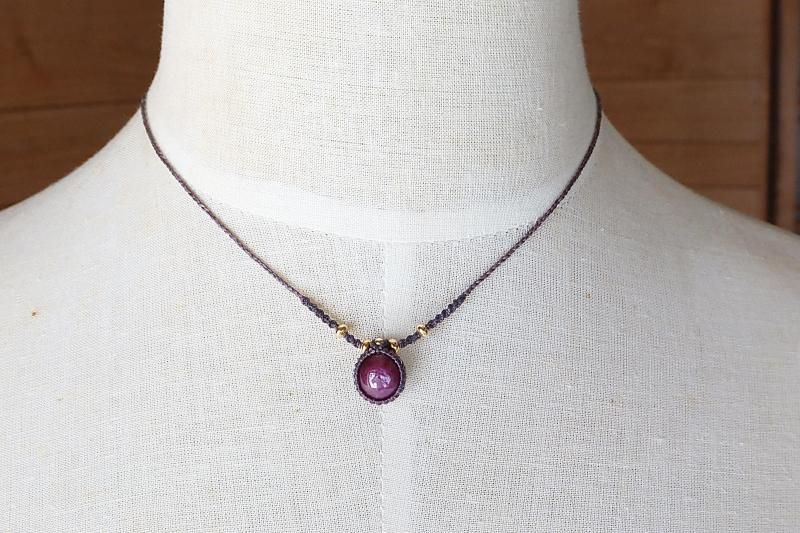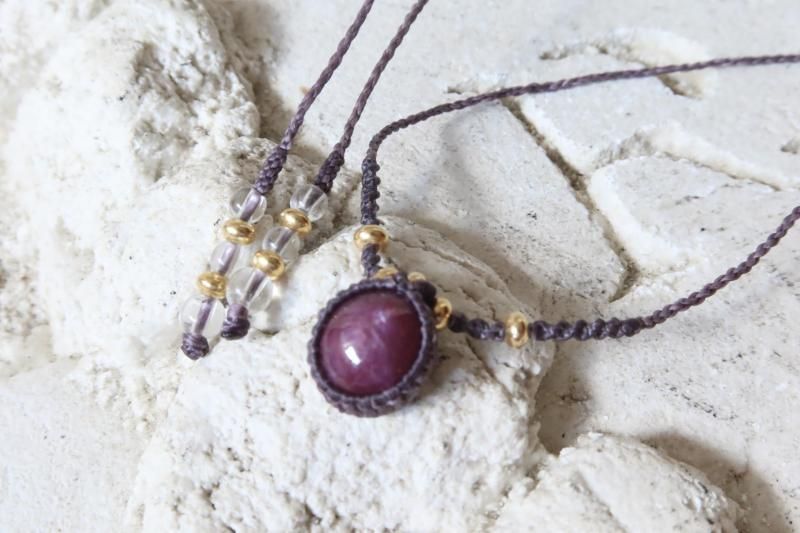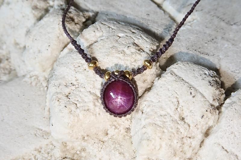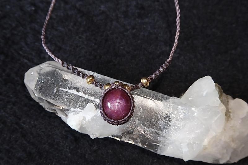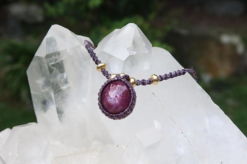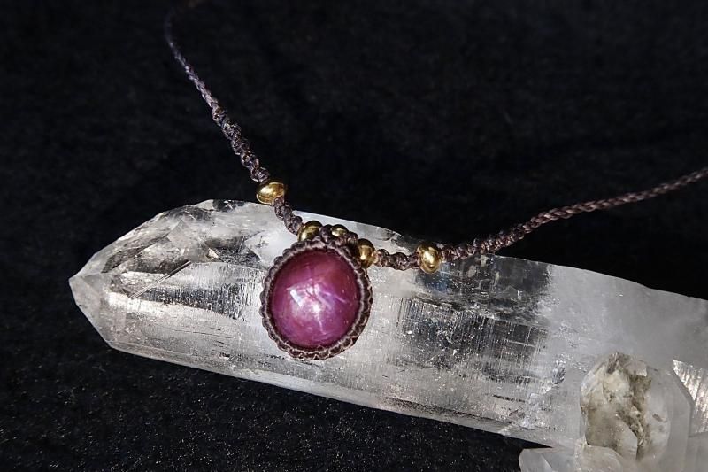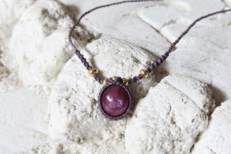 熟れた果実のような美しい宝石質スタールビーを使用しマクラメ編みにしました。