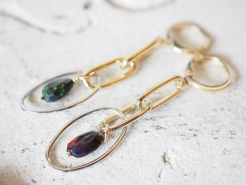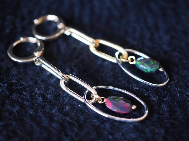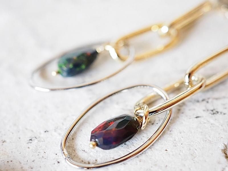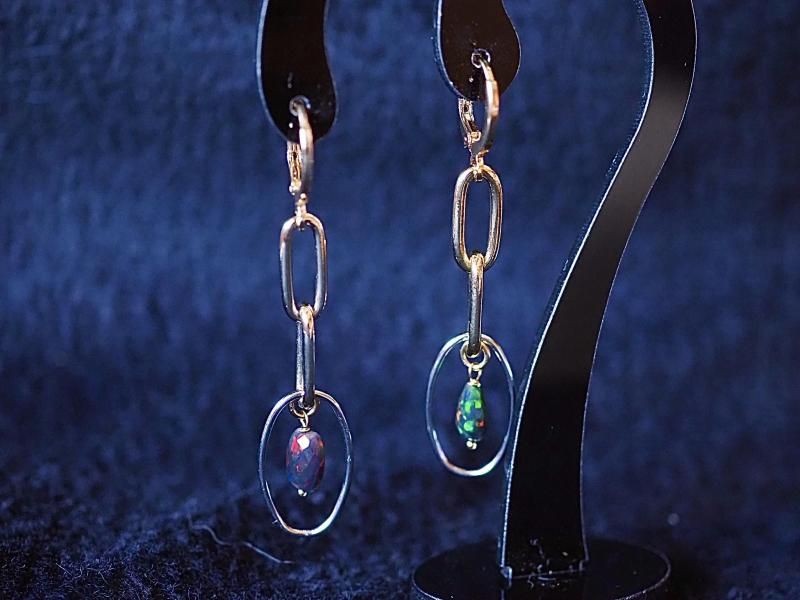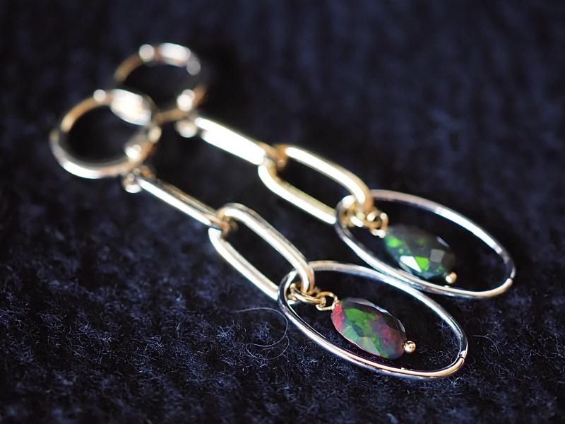 高品質エチオピア産ブラックオパール14金GFピアス 人を惹きつけるチカラが秘める石、悪い現状を好転させる力を持つ石、人の内面へ深く入り込み情熱や性欲などを刺激し活性化を促す石