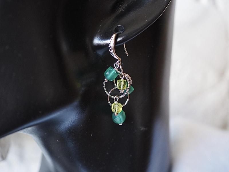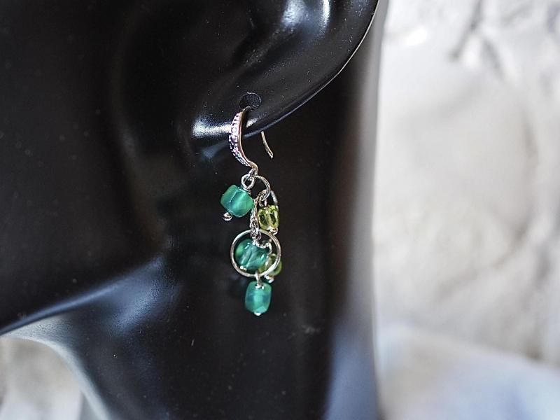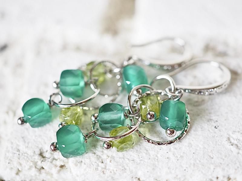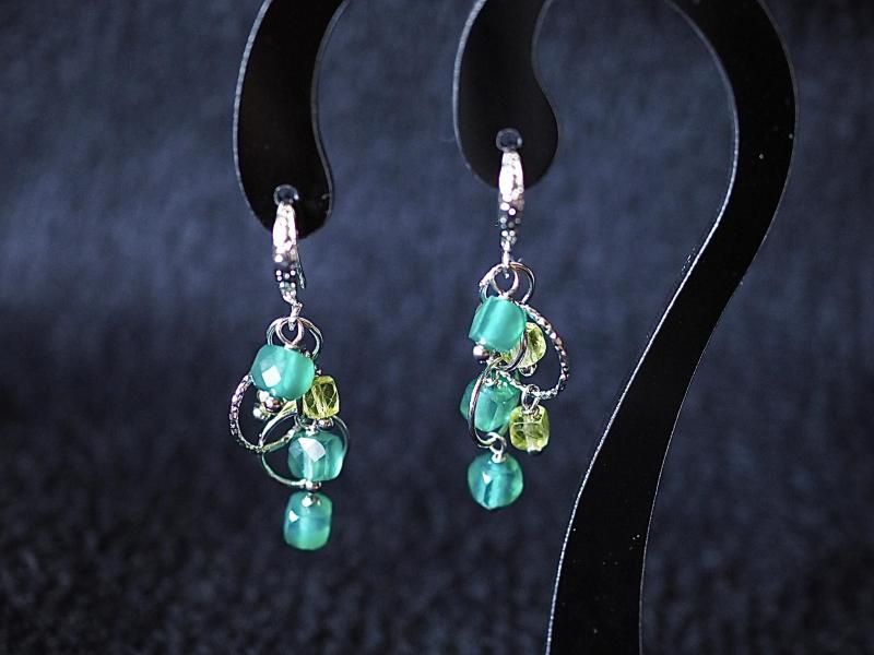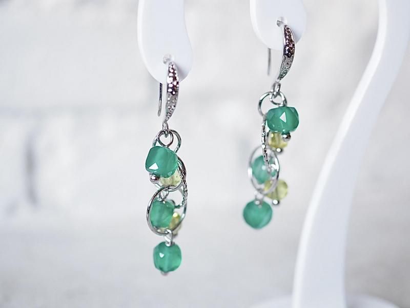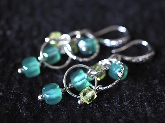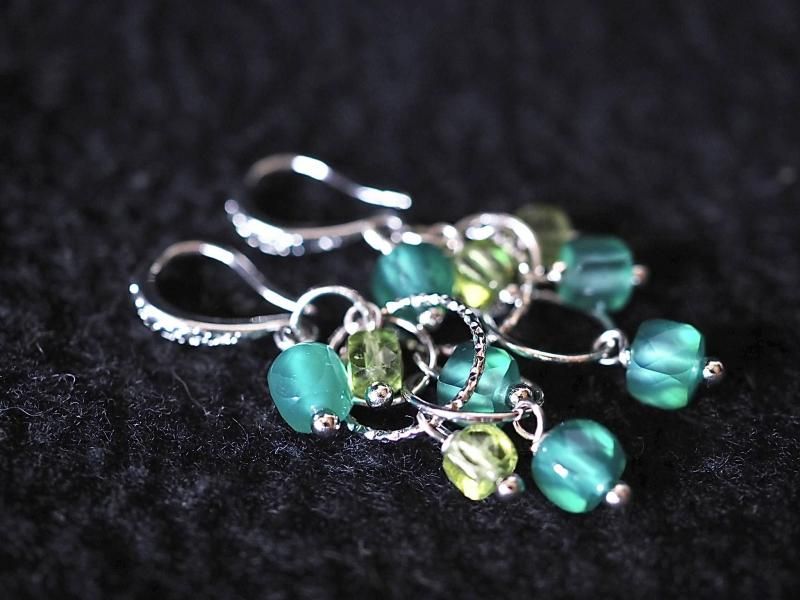 女性の若さと美しさを永遠に保つと言われる石 心をクリーンにし本能を目覚めさせる宝石質グリーンオニキス、ペリドットsilverフィルドピアス