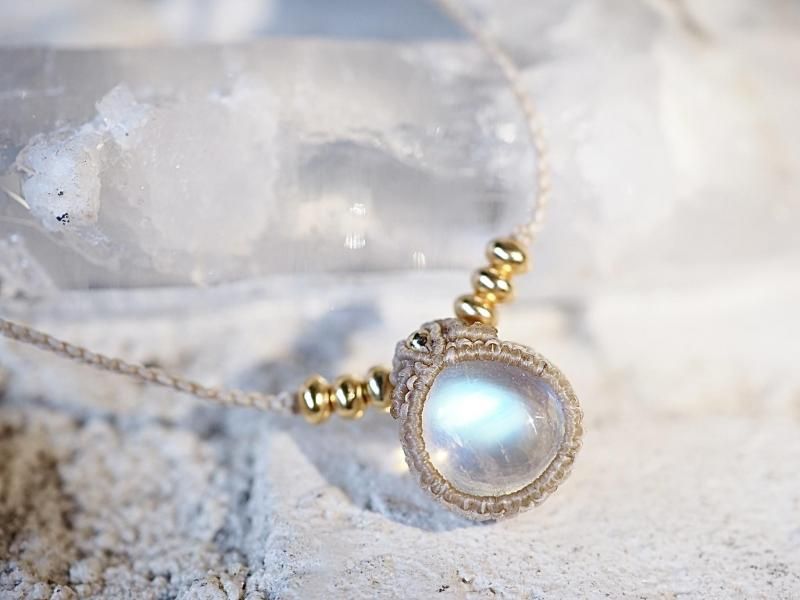 インド産ムーンストーンのマクラメ編みペンダントです。