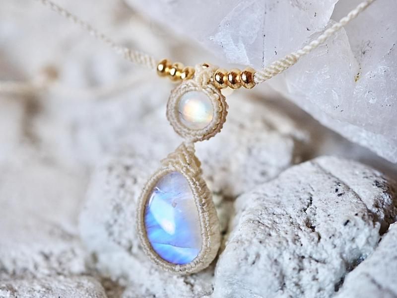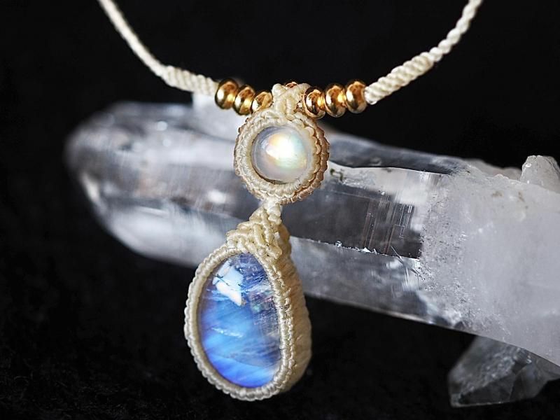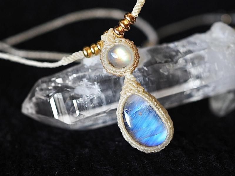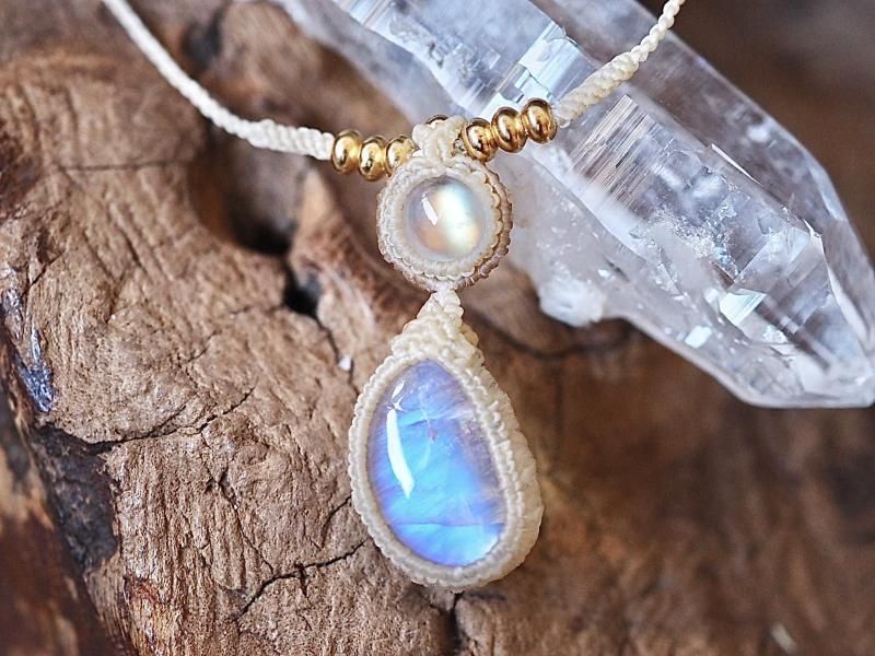 インド産ムーンストーンのマクラメ編みペンダントです。